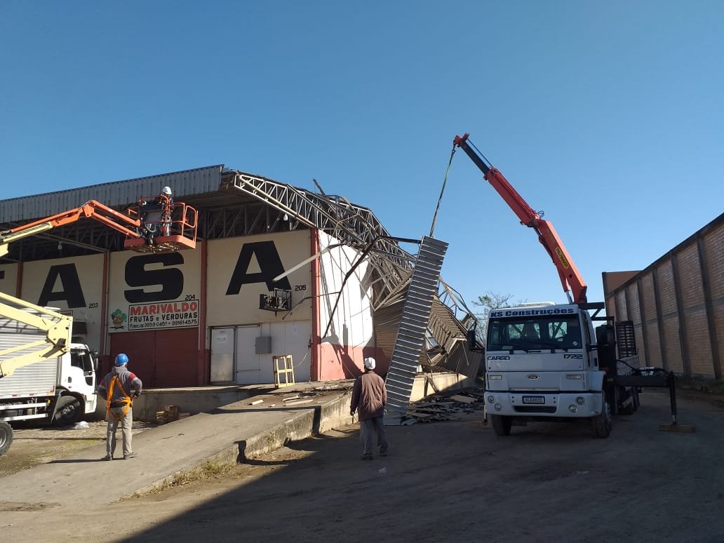 Serão substituídas as telhas de fibrocimento e os perfis metálicos. A estrutura corroída deve passar por tratamento específico, evitando novos desabamentos. O objetivo é garantir a segurança e o bom andamento das atividades comerciais no atacado de produtos hortifrutigranjeiros.