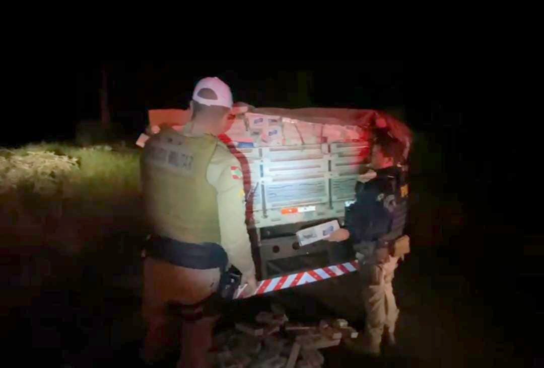 A informação é de que a carga estava em um caminhão, com placas de uma Chevrolet/S10. A abordagem ocorreu por volta das 21h, na rodovia estadual SC-157, no município de Coronel Freitas, a 25 quilômetros de Chapecó.