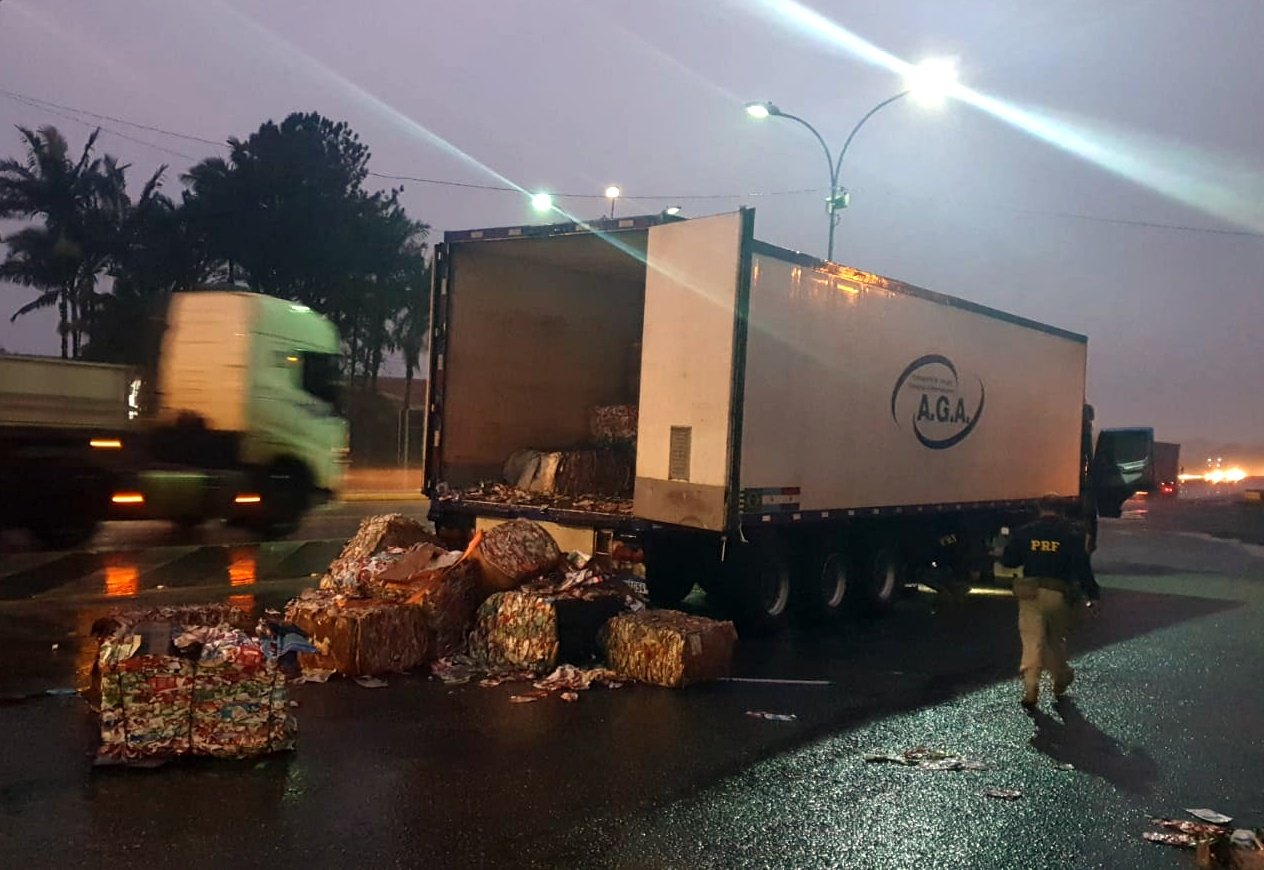 Com apoio do Corpo de Bombeiros e da Concessionária Autopista, que disponibilizaram equipamentos, foi possível acessar os compartimentos ocultos no fundo do reboque, onde havia centenas de tabletes de cocaína.