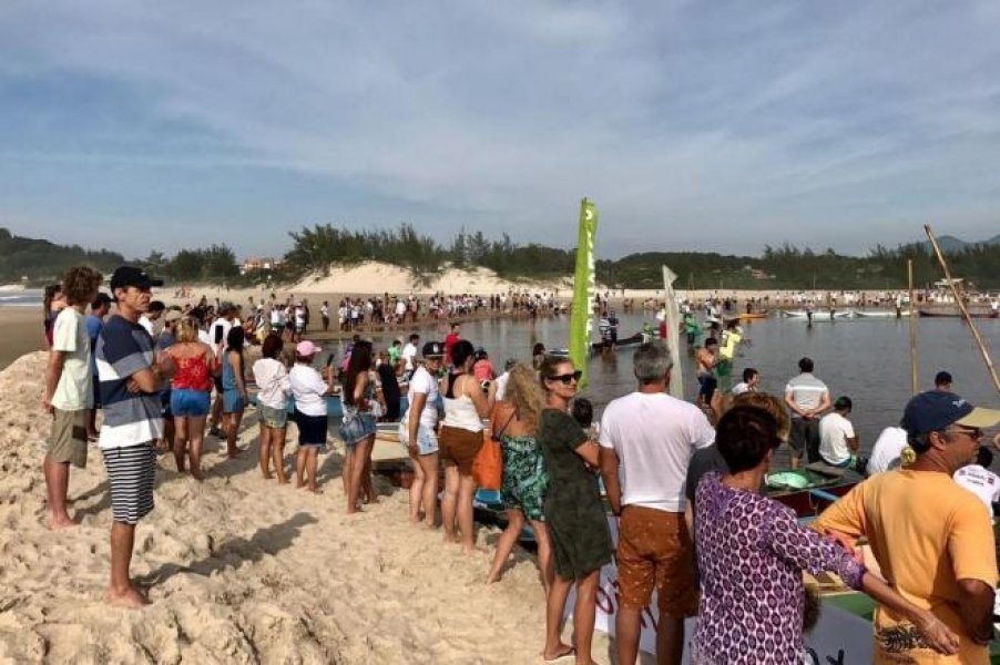 Moradores de Garopaba e até turistas deram um verdadeiro abraço coletivo na Lagoa da Encantada na manhã deste sábado (15). Conforme os organizadores do protesto, cerca de mil pessoas, os quais se incluem pescadores e surfistas, se reuniram ao redor da lagoa durante o dia para protestar contra um projeto de esgotamento sanitário da Casan que poderia tornar o rio um local para despejo de esgoto tratado.