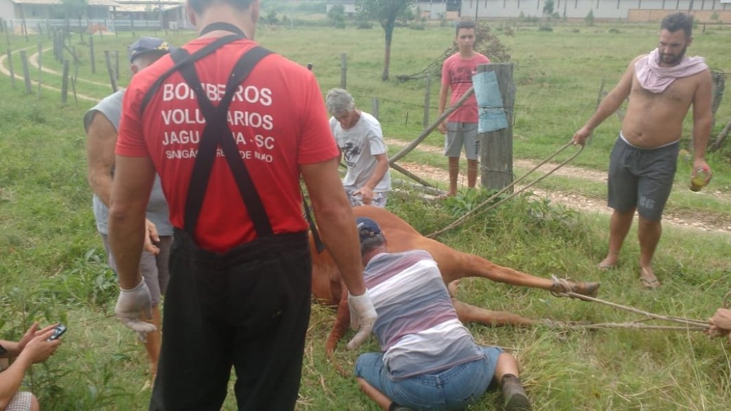 O parto apresentava complicações devido ao posicionamento do bezerro. Os bombeiros auxiliaram no parto e realizaram a retirada, porém o bezerro veio a óbito e a vaca sobreviveu. O fato ocorreu em Morro Grande, em Sangão, nesta quarta-feira por volta das 15h.