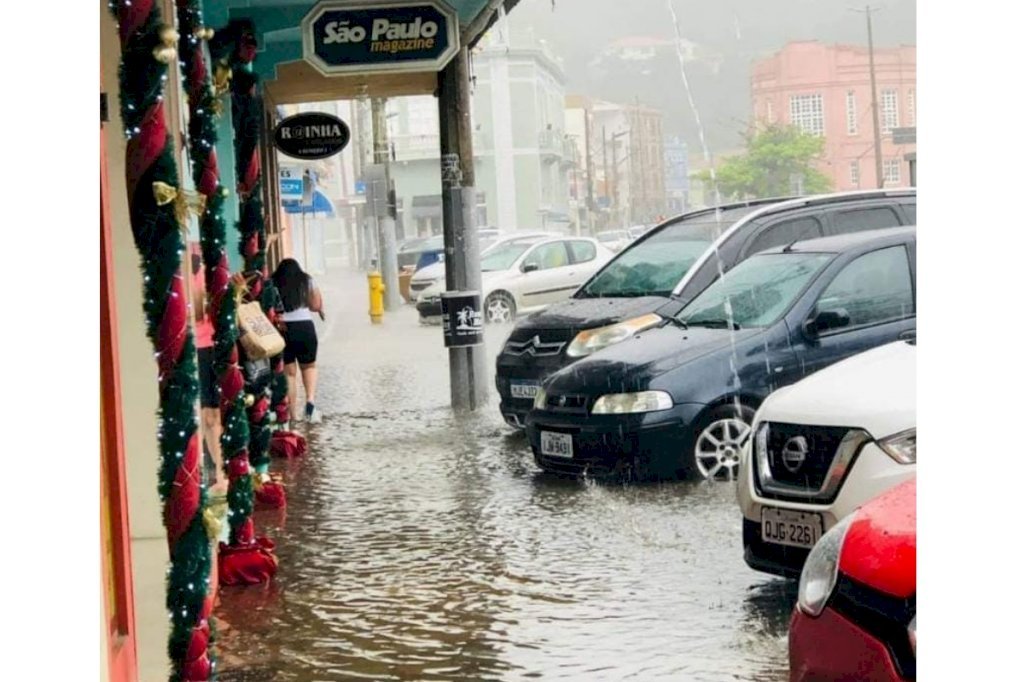 A chuva intensa que caiu sobre Laguna, na manhã desta quarta-feira (29), provocou alagamentos em diversas ruas. Foram registrados transtornos no comércio local e também no trânsito. A chuva ocorreu em apenas uma hora.