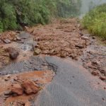 Nos últimos seis dias, a água correu livremente das encostas para o asfalto, levando embora todo o investimento em pavimentação. Nesta quinta-feira (5), houve deslizamentos na rodovia e o acesso está interditado.