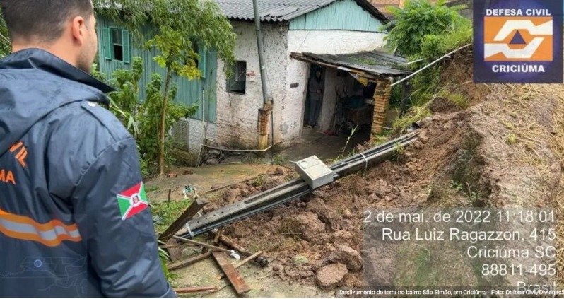 A Defesa Civil de Criciúma foi acionada por volta das 18h para atender a ocorrência. Com o deslizamento, um poste caiu mas nenhuma residência foi atingida. Outras ocorrências foram registradas nesta segunda.