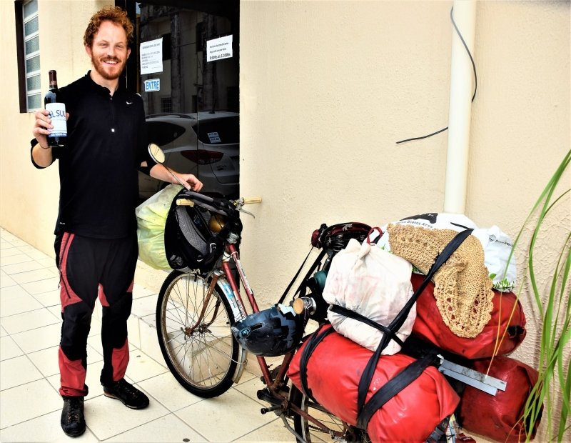 Uma bicicleta e sua bagagem e a vontade de conhecer o planeta, assim Cedric resumiu sua empreitada, na tarde desta segunda, rumou para o Farol de Santa Marta, em Laguna, e na sequência atravessará a balsa com destino ao Centro Histórico da cidade mais antiga do Sul de SC, e depois voltará a pegar o trajeto via BR-101.