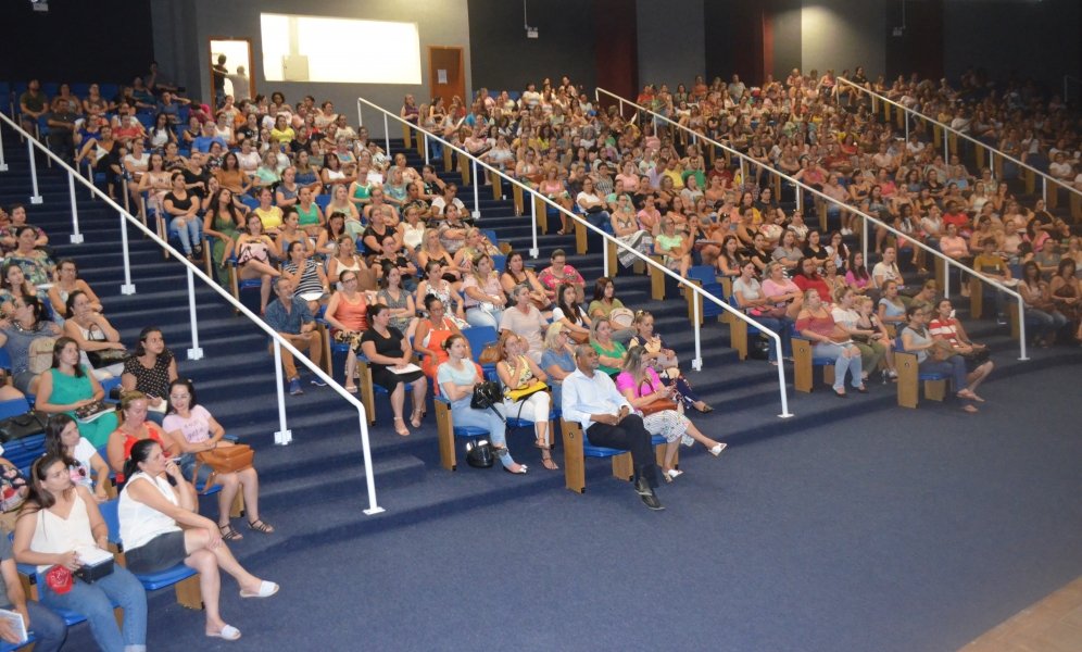 Centenas de professores e diretores de escolas municipais lotaram o teatro da Arena Multiuso Prefeito Estêner Soratto da Silva, nesta quarta-feira (19), para o encerramento do ciclo de capacitações promovido pela Fundação Municipal de Educação (FME). Com isso, tudo está preparado para a volta às aulas nesta quinta-feira (20).