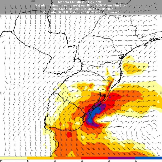 O ciclone subtropical foi nomeado pela Marinha do Brasil como Yakecan ou “o som do céu” na língua tupi-guarani. O último ciclone a ter sido nomeado na costa brasileira foi a tempestade subtropical Ubá, em dezembro de 2021. Os ventos podem atingir velocidades de até 100 km/h nos pontos mais altos da Serra Catarinense, ficando próximo dos 90 km/h nas áreas avermelhadas do mapa.