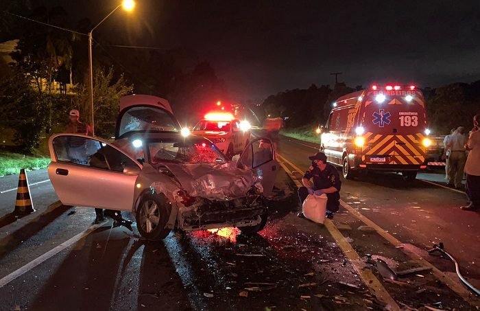 Após colidir o carro Chevrolet Tigra na lateral de um caminhão, um motorista, de 64 anos, ficou ferido. O fato ocorreu na noite dessa quarta-feira (22), na Rodovia SC-108, na altura do KM 358, por volta das 20h, em Cocal do Sul.