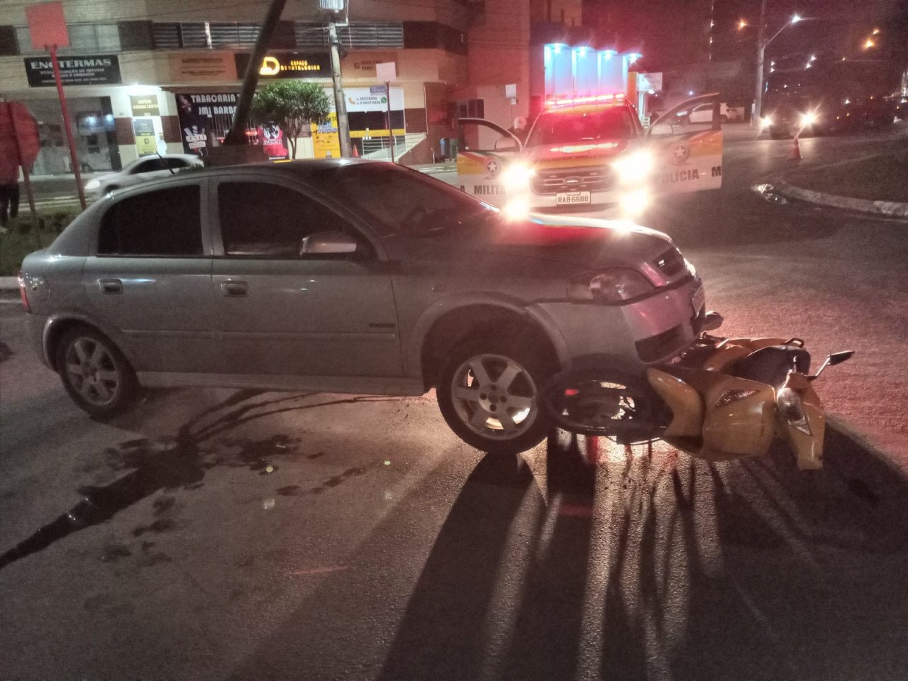 No acidente de trânsito, a condutora de motoneta colidiu na lateral direita de automóvel. Após atendimento pré-hospitalar ela foi conduzida ao Hospital Santo Antônio de Armazém.