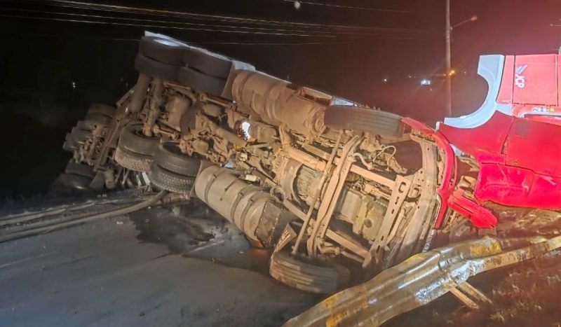 O acidente foi registrado por volta das 3h50 e envolveu um caminhão betoneira, que transportava cimento, e outro caminhão carregado com verduras. Segundo a PRF, os veículos seguiam em direções opostas no momento da colisão.