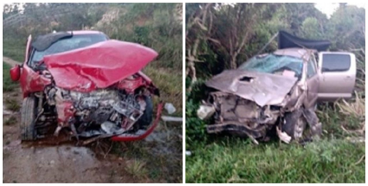 De acordo com os Bombeiros Voluntários, um Fiat Palio e uma caminhonete Hilux colidiram de frente. Com o impacto os dois veículos saíram da pista e capotaram.