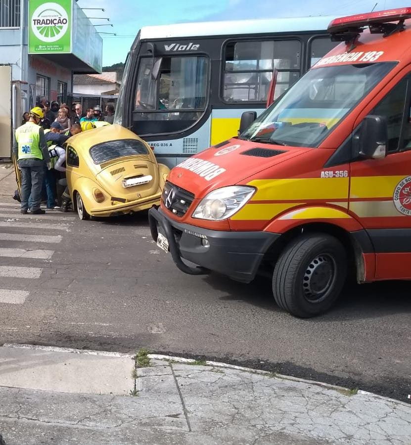 Um ônibus escolar e um carro, ambos com placas de Tubarão, colidiram no começo da tarde desta segunda-feira (13) no cruzamento da Rua Machado de Assis com a Rua Santa Lúcia, no Centro de Capivari de Baixo. O acidente ocorreu por volta das 14 horas. O motorista do ônibus, de 54 anos, não teve ferimentos. A condutora do carro, um Fusca, não conseguiu sair do veículo e foi assistida pelo Corpo de Bombeiros Militar no município. Ela relatava dores na região pélvica e apresentava suspeita de fratura na clavícula direita. A mulher, de 62 anos, foi levada para atendimento no Hospital Nossa Senhora da Conceição, em Tubarão. A Polícia Militar de Capivari de Baixo deu apoio à ocorrência e fez a segurança e o redirecionamento do tráfego até o atendimento da vítima e remoção dos dois veículos.