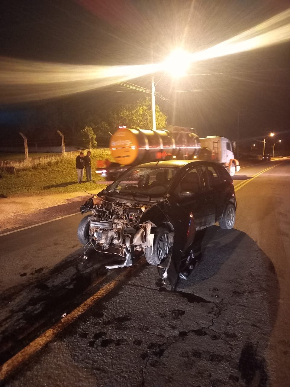 Entre os envolvidos estava uma caminhonete l200 Triton, que nada sofreu mas permaneceu no local aguardando a chegada da Polícia Rodoviária Estadual (PRE), e um Ford Fiesta conduzido por homem maior que encontrava-se no interior do veiculo, consciente, orientado, com sinais vitais normais e escoriações no na região dorsal.