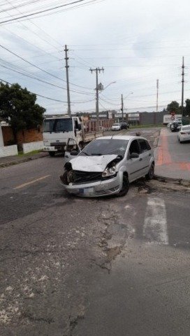 Um acidente de trânsito foi registrado nesta quarta-feira (30), no bairro Nossa Senhora da Salete, em Criciúma. O condutor de um automóvel Ford/Fiesta atingiu um caminhão após realizar manobras perigosas.