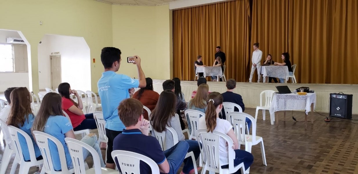 Três jovens querigmáticas (participantes do Querigma – Curso de evangelização e formação de lideranças jovens), promovido neste sábado, em Rio Fortuna. O evento Juventude em Ação é um encontro repleto de fé, diversão e crescimento pessoal. Faz parte das atividades complementares propostas no Querigma, juntamente com uma campanha para arrecadação de alimentos em nível comarcal, alimentos esses que serão entregues posteriormente em uma instituição de caridade. Parabéns pelas atividades, que cada vez mais os jovens sintam-se chamados para esta missão de evangelizar!