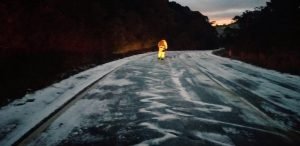 Congelamento de pista provoca interdição de trecho de acesso à serra catarinense