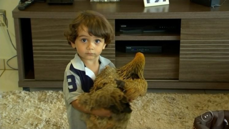 Gato, cachorro, passarinho, peixe, ou até mesmo coelho. Nenhum desses animais de estimação caiu nas graças do pequeno Arthur, de apenas 2 anos, que mora em Mirassol (SP) e escolheu uma galinha para ser a companheira dentro de casa.