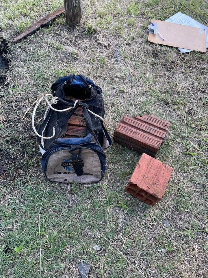 Além da guarnição que efetuou o resgate do cadáver, já estavam no local a Policia Militar e a Polícia Civil. Junto com o corpo sem identidade confirmada, havia uma bolsa, com tijolos em seu interior, amarrada ao pescoço da vítima.