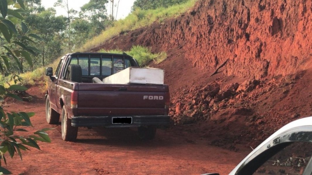 O Instituto Médico Legal (IGP) se dirige ao local para recolher o corpo, que está enrolado em um colchão, na carroceria de uma caminhonete com placas de Criciúma.