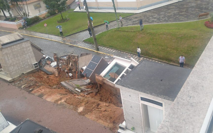 O muro desabou na quarta-feira (4) da semana passada, por conta da intensa chuva que atingiu Santa Catarina. Quatro capelas também foram ao chão e atingiram três carros que estavam estacionados na Rua Jorge Lacerda. Ninguém ficou ferido com o incidente. Com a continuidade da chuva, outras duas capelas desabaram, totalizando seis estruturas complemente destruídas. Outras duas capelas correm o risco de cair também, pois o solo, ainda muito enchardo, pode deslizar. O local está isolado e as pessoas devem evitar passar por este trecho da rua, em especial a pé.