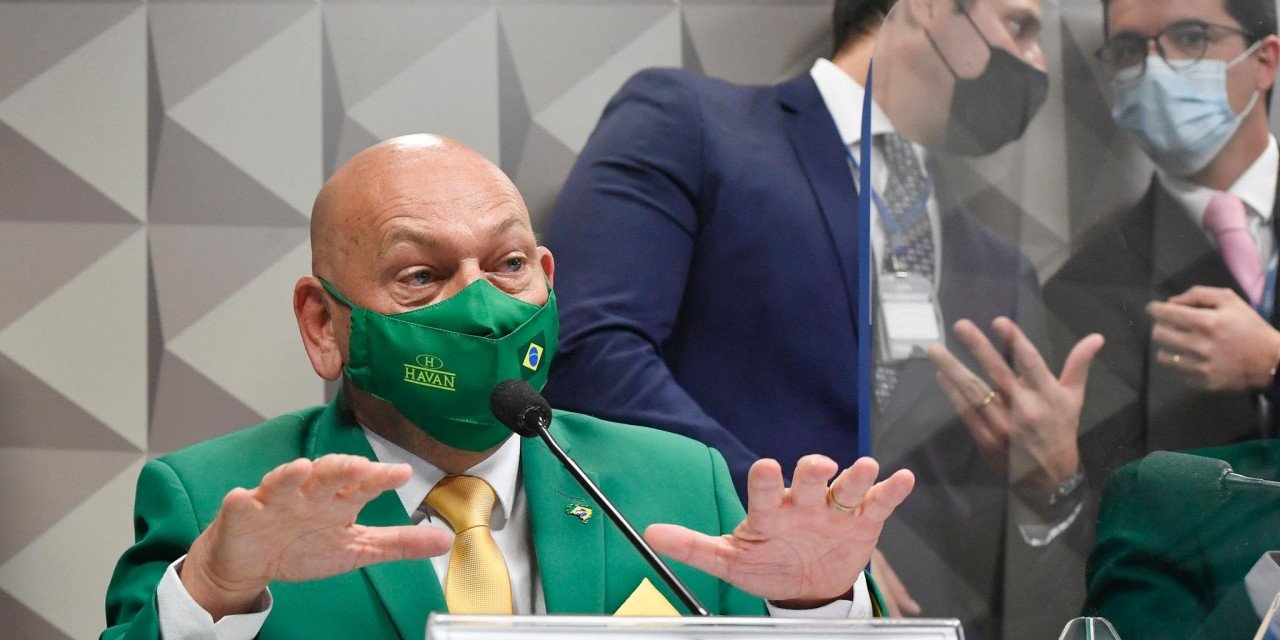Omar Aziz (PSD-AM) classificou como “resposta esfarrapada” a explicação de Luciano Hang para o episódio das algemas. Antes do depoimento, o empresário publicou um vídeo na internet ostentando algemas e dizendo que elas seriam usadas por ele, caso recebesse voz de prisão na CPI. Questionado por Renan Calheiros (MDB-AL), Hang disse que o Brasil precisa ter mais senso de humor.