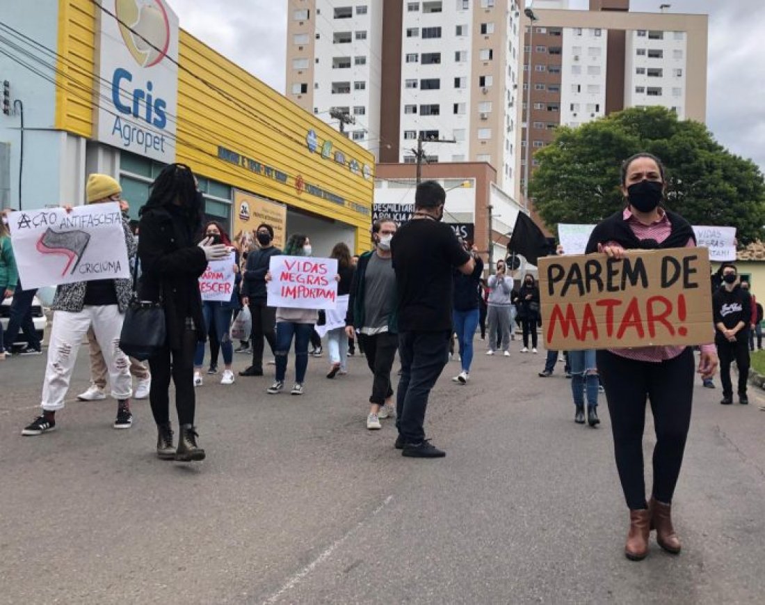 Movidos pelas manifestações que ocorrem em diversos países após a morte de George Floyd, homem preto asfixiado por um policial branco nos Estados Unidos, manifestantes realizaram uma passeata em Criciúma neste domingo (7), pela manhã. O movimento era em prol da democracia e contra o racismo e fascismo.