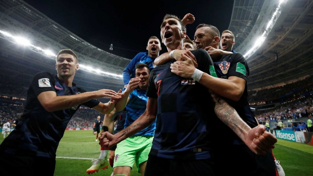 A partida terminou empatada em 1 a 1 nos 90 minutos e foi para a prorrogação. A virada aconteceu no minuto 2 do segundo tempo da prorrogação.Pivaric tentou um cruzamento da esquerda, que a zaga inglesa afastou. A sobra ficou com Rakitic, que cabeceou de volta para a área, pegou a defesa de surpresa e encontrou Mandzukic nas costas. O camisa 17 chegou cara a cara com Pickford e bateu cruzado, para o fundo das redes.