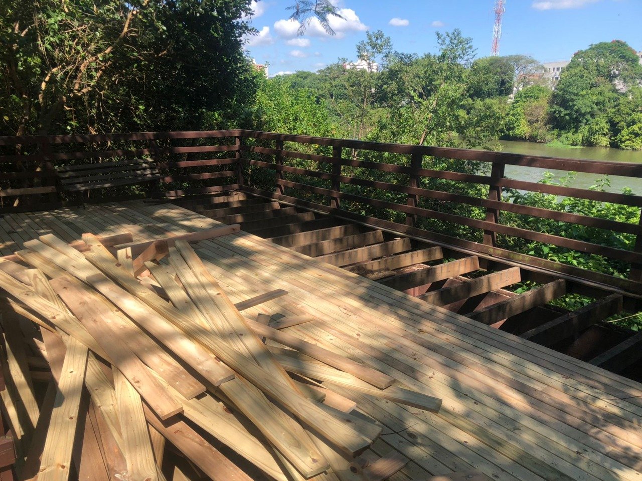 Construído em 2016, o deck de observação do Rio Tubarão nas proximidades da ponte Nereu Ramos, na avenida Marechal Deodoro, começou a ser reformado nesta quarta-feira (1º). Os trabalhos são executados pela secretaria de Infraestrutura.