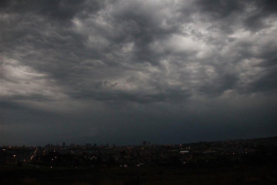 A previsão é de pancadas de chuva com descargas elétricas (raios) e risco de temporais localizados, acompanhados de fortes rajadas de vento (acima de 60 km/h) e granizo isolado.