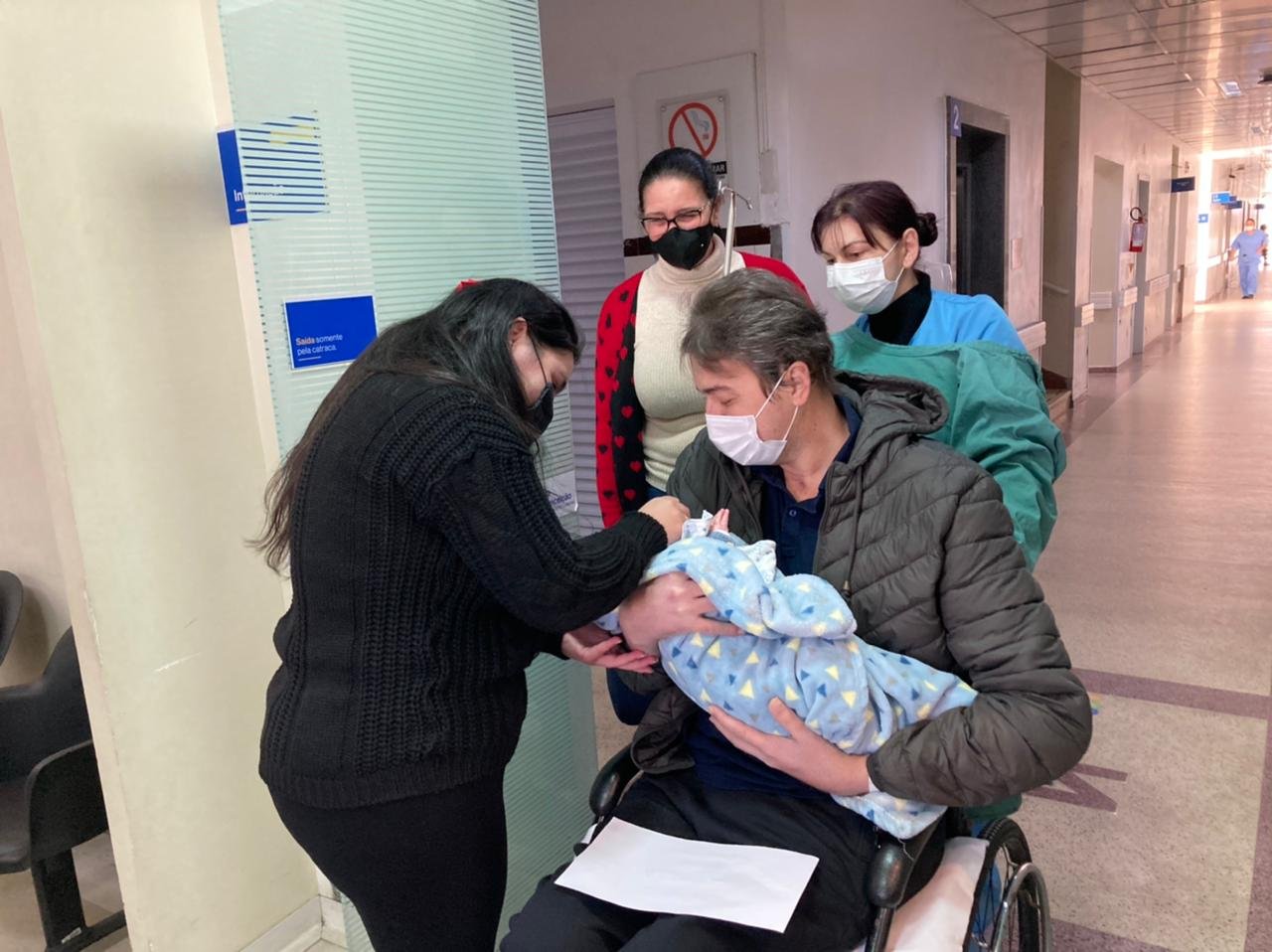 Quatro meses de internação em consequência da Covid-19 e nesta quarta-feira (28), Gilmar Wenz, 36 anos, de Tubarão, sai pela porta da frente do Hospital Nossa Senhora da Conceição com a família comemorando sua recuperação. O melhor de tudo, conhecer o filho Gullermo, que nasceu no dia 08 de abril enquanto ele estava intubado na Unidade de Terapia Intensiva. Foi um encontro emocionante, com direito a lágrimas e muitos aplausos. Ele abraçou a esposa Tayse e pegou o filho no colo, num gesto que comoveu todos que estavam na recepção da instituição.