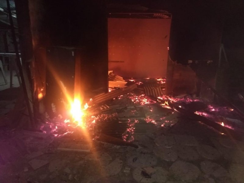 Dentro havia uma geladeira, um micro-ondas e ferramentas. Todos foram destruídos pelo fogo. Foram gastos aproximadamente 1,5 mil litros de água para realizar o rescaldo.