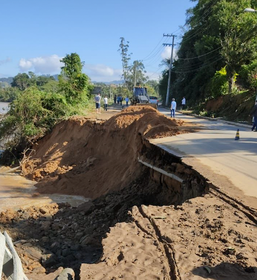 As água do Ro Braço do Norte baixaram em São Ludgero, mas as consequência da cheia ainda traz diversos prejuízos para a cidade. A infraestrutura viária e o fornecimento de água foram os principais desafios enfrentados ao longo desta sexta-feira (6). O solo ainda está muito encharcado e as barrancas do rio começaram a desabar. Um dos casos mais graves é na Rua Dona Gertrudes, entre a rotatória do bairro Divina Providência e a do bairro Bom Retiro. O trecho, que passa em frente da sede da Cooperativa de Eletricidade (Cegero), está interrompido depois que um deslizamento literalmente ‘engoliu’ parte da via. Outro ponto de grande preocupação é na Estrada Geral Barra do Norte, onde os desbarrancamentos são ainda maiores e em vários pontos.