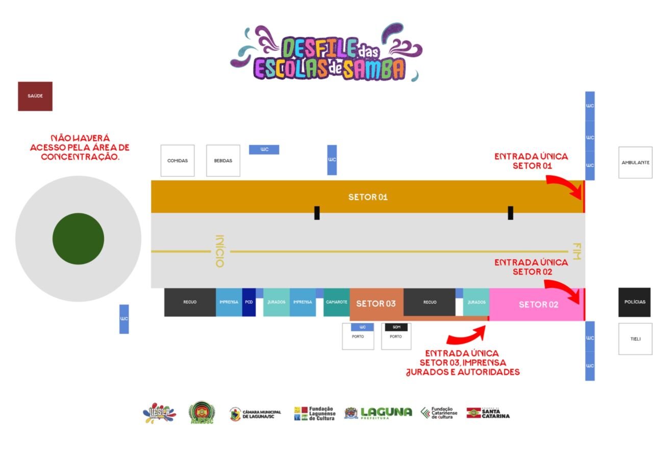 O mapa completo da estrutura está disponível nos canais oficiais da Prefeitura de Laguna.