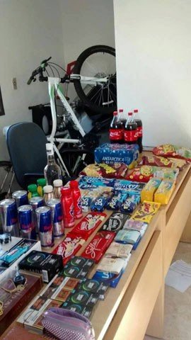 O acompanhamento foi feito e, ao perceberem que não conseguiriam fugir, pararam o carro em um outro posto de combustíveis, na região de Itapirubá, às margens da rodovia. Durante a abordagem, a mulher apresentou uma identidade falsa, porém, não convenceu os policiais, e confessou ser foragida do Presídio Regional Feminino de Joinville, onde cumpria pena por tráfico de drogas. Dentro do carro foram encontrados vários produtos provenientes de possíveis furtos e roubos na região, como bebidas, cigarros, chocolates, chips (salgadinhos), dinheiro, cartões de banco e celulares. Uma pequena porção de maconha e R$ 6 mil não declarados também foram apreendidos.