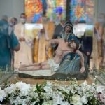Ao ser tirado da cruz, a mãe acolhe o filho morto em seu colo, nos seus braços. “Sem dúvida alguma é uma cena triste e difícil. É uma mescla de morte, perda, mas ao mesmo tempo é uma presença de mãe que no momento mais horrível da vida do seu filho se faz presente. Isso ocorre, sobretudo, pelo vínculo do amor que é próprio de mãe. O amor nunca é ausente, é uma experiência de presença, principalmente nos desertos da vida, nos momentos difíceis. É a presença da fé que naquele espaço ermo, desértico, no sentido de vazio, morto que é o calvário, Maria se torna essa boa presença, a de mãe e do amor. A nobre flor que desabrocha no deserto e exala o perfume da esperança e de uma nova realidade que é a ressurreição”, explica.