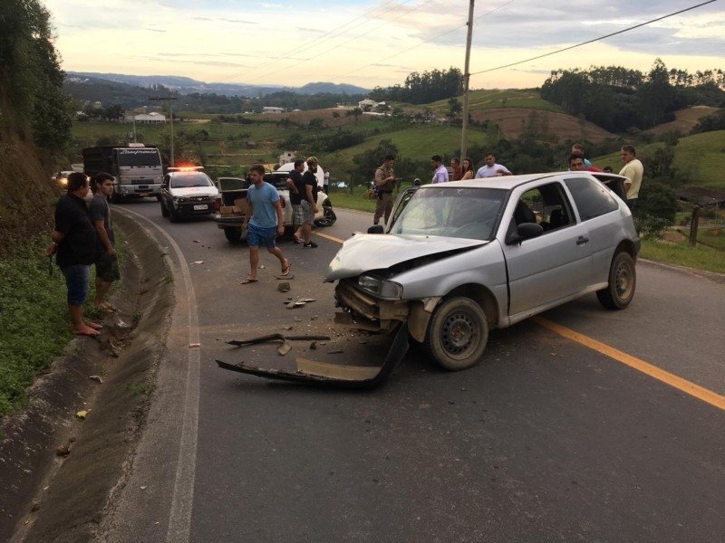 Dois carros colidiram frontalmente em Orleans na tarde deste sábado (4), às 16h15. A ocorrência foi registrada na rua Vergínio Pizzolatti, no bairro Rio Belo.