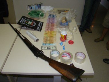 Um homem de 57 anos foi preso, ontem à tarde, no bairro Humaitá, em Tubarão, pelos investigadores da Central de Operações Policiais (COP). Foram apreendidos mais de um quilo de maconha, cerca de 300 gramas de cocaína, quatros pontos que aparentam ser LSD, R$ 1 mil, um dólar, uma espingarda garruncha calibre 32 e produtos químicos utilizados para batizar cocaína.