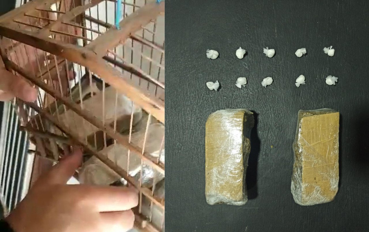Ao ser retirada da parede os policiais constataram que na gaiola havia dois torrões de maconha, pesando juntos 350 gramas. Em outro local, escondido em um buraco na parede de um outro bloco do mesmo condomínio, o cão localizou cocaína, pesando cerca de 4,4 gramas. A droga foi apreendida e os procedimentos cabíveis foram realizados.