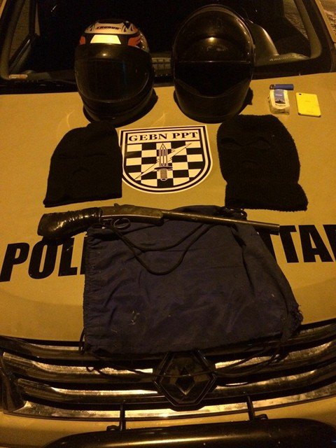 O veículo foi reconhecido pelos policiais, pois possui as mesmas características de uma moto utilizada para praticar os roubos na Padaria Alto Travessão, em Braço do Norte, e outro no Becker Supermercados, em São Ludgero. Durante a abordagem, foram encontradas uma garrucha e duas balaclavas.