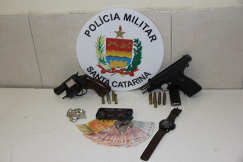 Os dois foram conduzidos à Central de Plantão Policial (CPP). Com eles, havia um revólver calibre 38, com quatro munições intactas, e uma pistola argentina, com 13 projéteis também não deflagrados. O adolescente já tinha passagem por assalto, e o adulto saiu do Presídio Regional de Tubarão há cerca de uma semana.