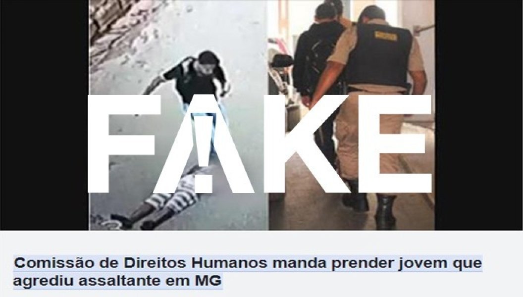 Circula pelas redes sociais uma mensagem que diz que a Comissão de Direitos Humanos mandou prender o jovem que agrediu um assaltante em Minas Gerais e que ele foi preso a pedido do Ministério Público. A afirmação é #FAKE.
