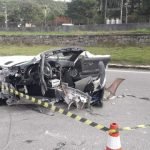 Um grave acidente na BR-101, em Biguaçu, na Grande Florianópolis, no final da manhã deste domingo (28), vitimou o empresário Roberto Angeloni, 50 anos. O veículo, uma Mercedes-Benz com placas de Criciúma, bateu na lateral de uma Ranger e depois colidiu em um poste e se partiu no meio.