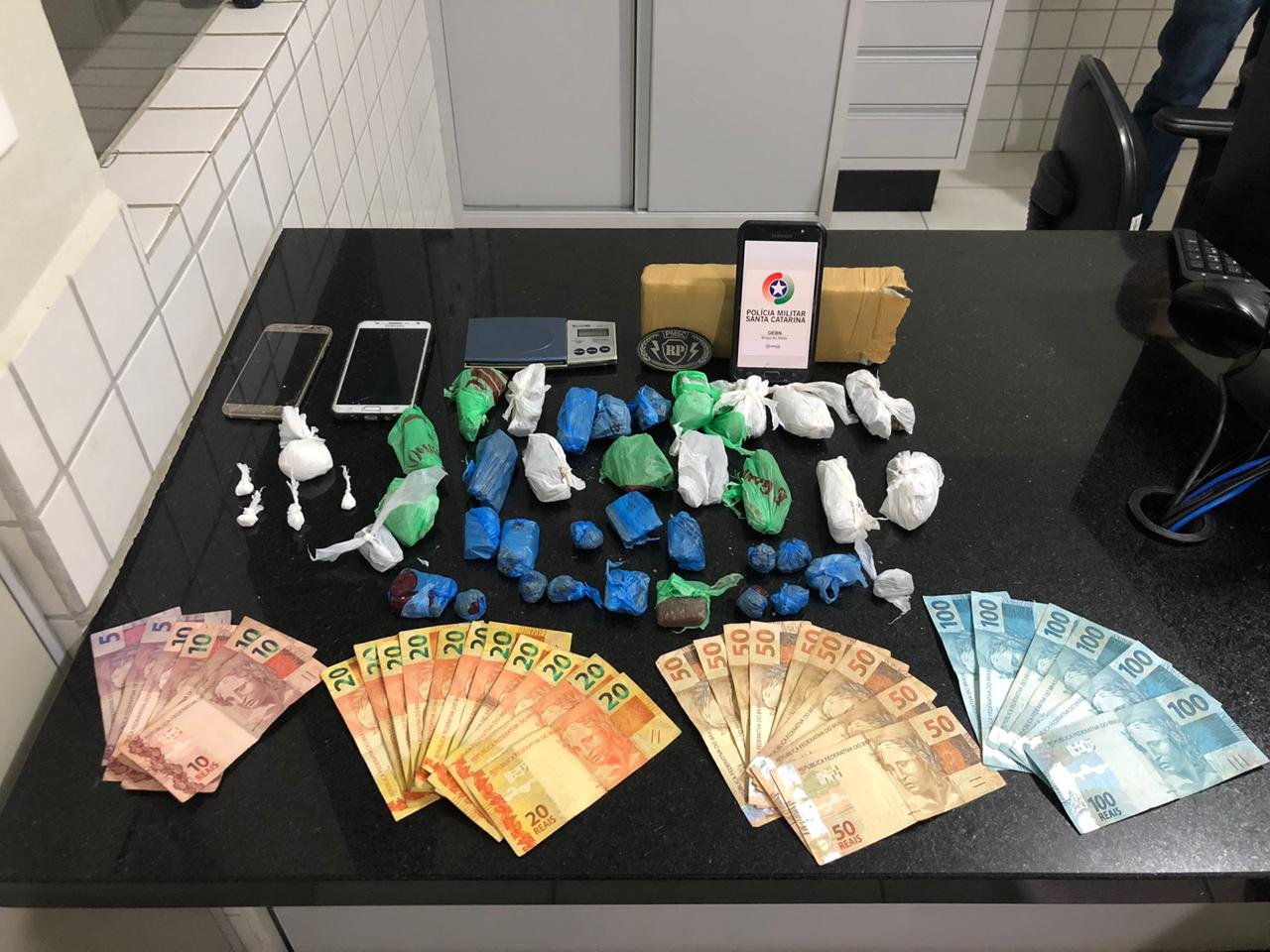 Por meio de buscas no local, foram encontradas mais drogas espalhadas pela casa, totalizando 37 porções de maconha preparadas para venda, com 544 gramas; 1 tablete de maconha, com 770 gramas; quatro porções de cocaína, pesando 24 gramas; uma balança de precisão; um celular e um montante de R$ 1.320,00.
