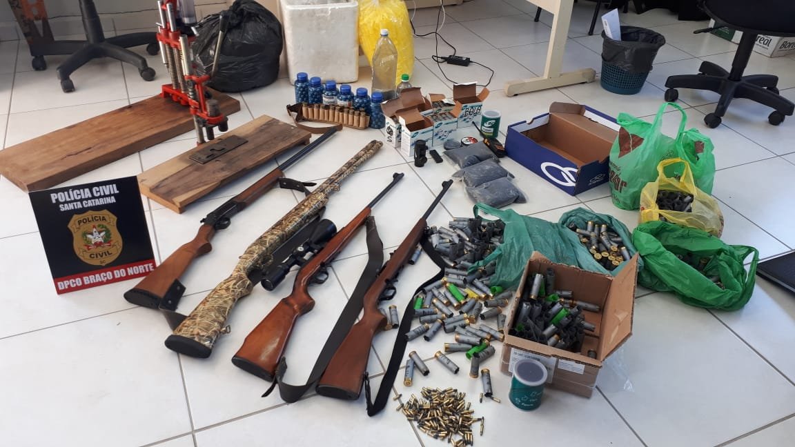 A Polícia Civil de Santa Catarina, por intermédio da Delegacia de Braço do Norte, com apoio das Delegacias de São Ludgero, Grão-Pará e Rio Fortuna apreendem quatro armas de fogo e centenas de munições. A ação ocorreu em Braço do Norte.