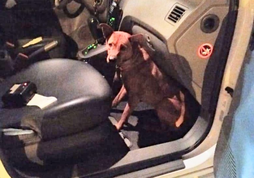Muito assustada, a cachorrinha se abrigou na viatura policial e foi levada pela guarnição para o Posto 1. Lá, ela está recebendo carinho, alimentação e todo o cuidado necessário, inclusive ganhou até um lugarzinho especial para se abrigar.
