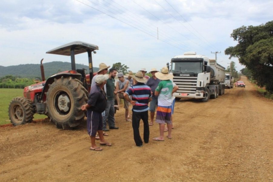 Moradores da localidade de Encruzo do Barro Vermelho, zona rural de Maracajá nos limites com Araranguá, impediram o fluxo de caminhões com carga pesada na rodovia Alcino de Freitas, que dá acesso à BR-101, e que está em obras para receber pavimentação asfáltica.