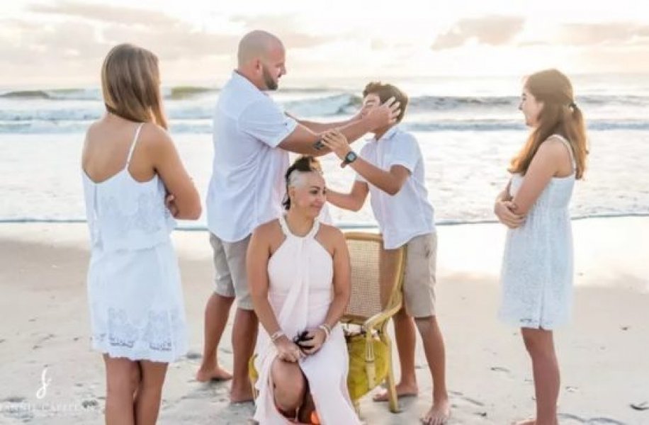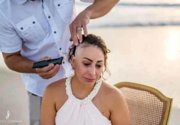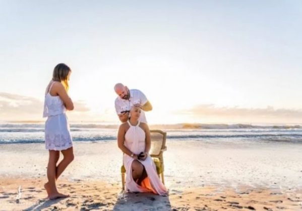Rebeca decidiu então raspar completamente a cabeça, ao invés de enfrentar a queda gradual das suas madeixas. Para isso, organizou uma espécie de ‘ritual’ na praia – silencioso, sensível e tocante. A cerimônia improvisada sob um lindo pôr do Sol contou a participação do marido, dos filhos e demais familiares.