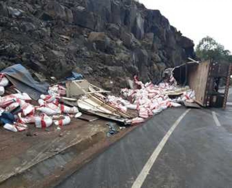 Uma carreta, com placas do Paraguai, saiu da pista e colidiu em um barranco, tombando em seguida. O motorista identificado como L.G.M.V, 37 anos, de nacionalidade paraguaia, não resistiu e morreu no local.