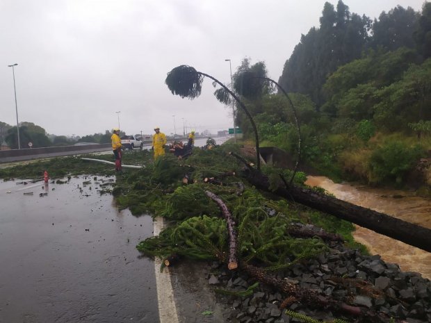 Queda de árvore em via pública no Estreito, no Morro da Lagoa. Poste caído sobre veículo no Rio Tavares. Árvore caída sobre veículo próximo ao Horto Florestal, com danos na rede elétrica. Árvore caída sobre a via no Pantanal.