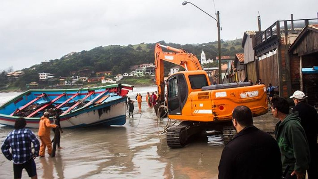 Duas embarcações afundaram na Praia Central de Garopaba devido aos fortes ventos na madrugada deste domingo (21). Os barcos Rommer e Agostinho começaram a ser resgatados nas primeiras horas da manhã. Dezenas de pescadores, bombeiros , funcionários e máquinas da prefeitura auxiliaram o resgate.